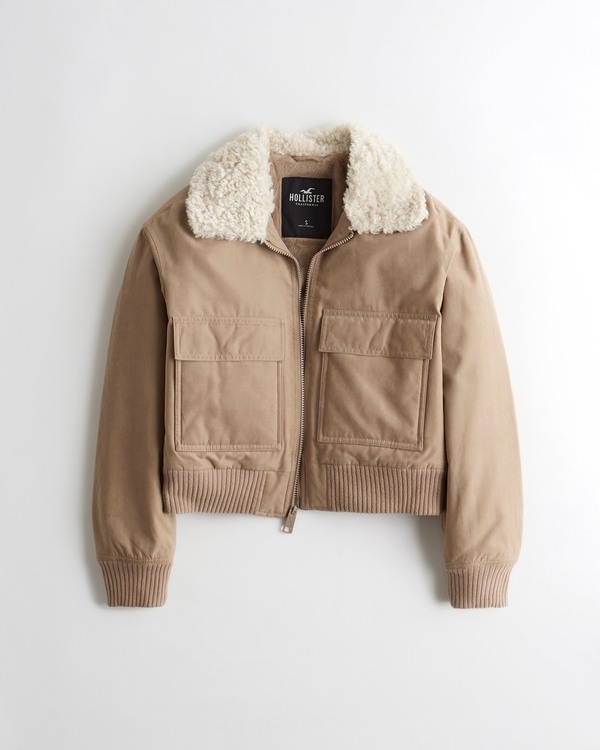 HOLLISTER Relaxed Textured Coat Brown XL Womens NWT Tan Pea Viscose Winter. Shop this seasons womens coats jackets at Hollister featuring on trend shirt jackets crop jackets hooded jackets for women more. Hollister Cropped Parka Jacket With Faux Fur Hood - Green 120 50 55 off ASOS Hollister Faux Fur Biker Jacket - Black 7995 64 20 off ASOS Hollister Cozy Plaid Shacket - Purple.